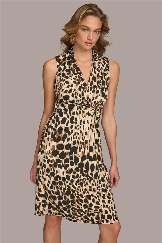 V-NECK LEOPARD MIDI DRESS