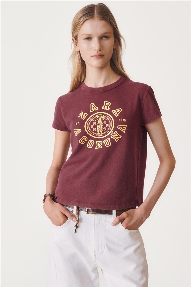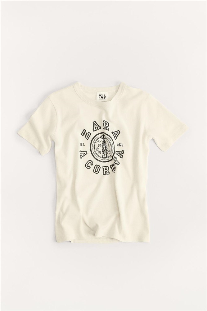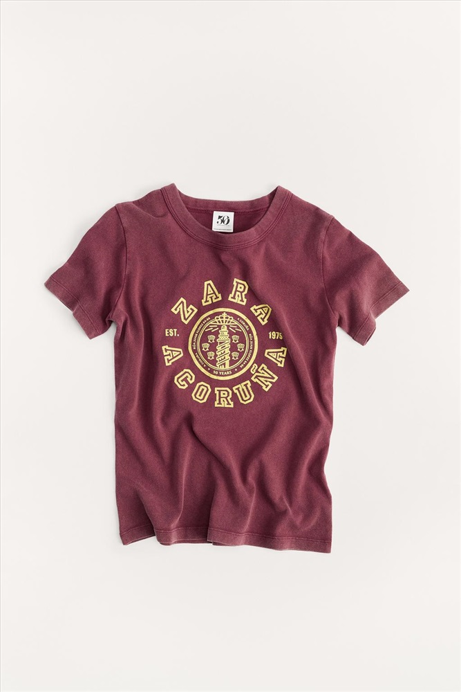 T-shirt made of cotton yarn. Round neck and short sleeve. Contrasting varsity 50th Anniversary print detail on the front.
