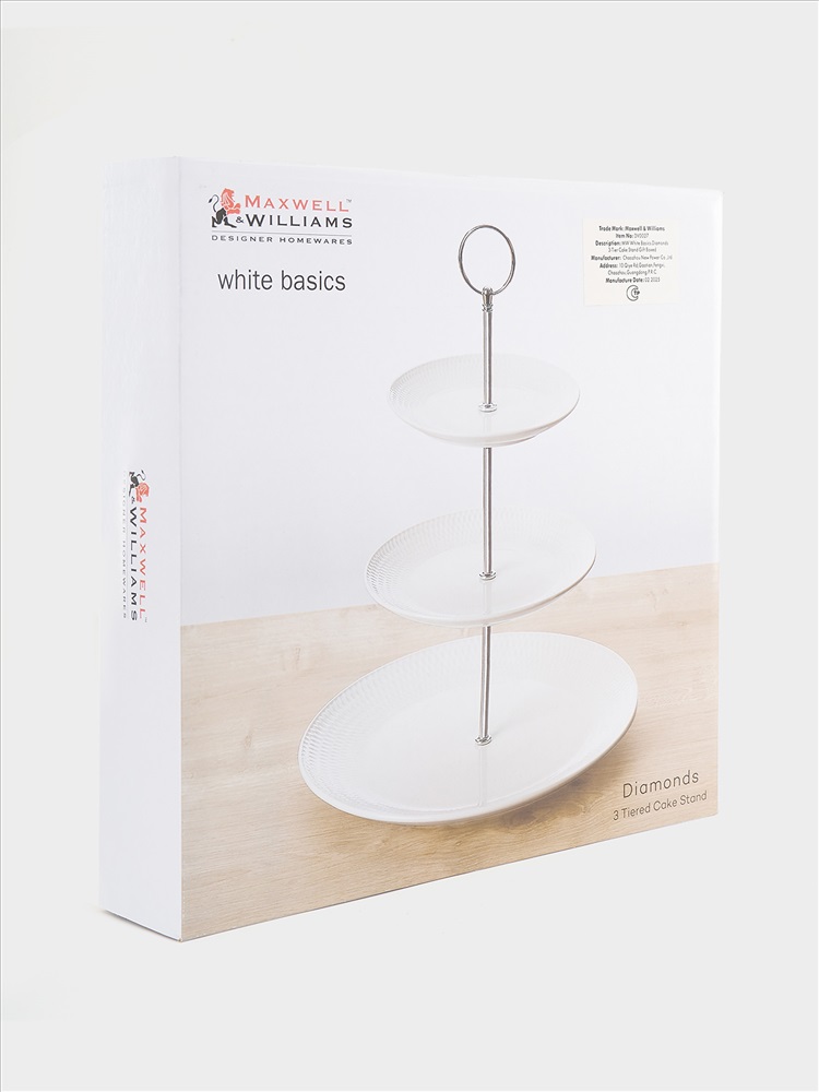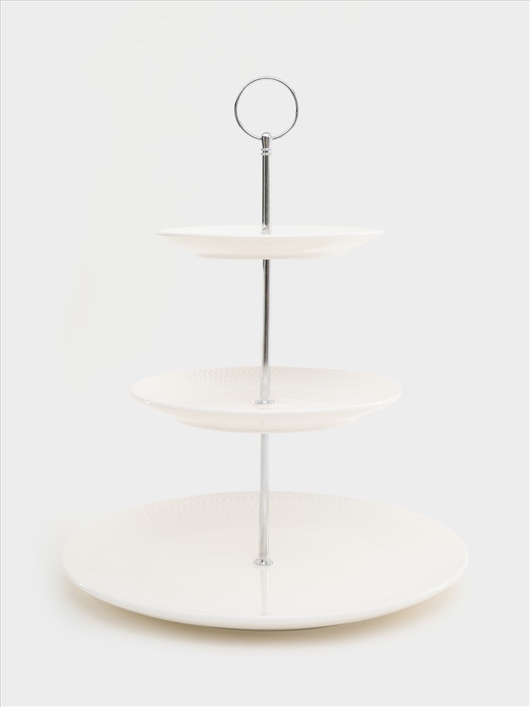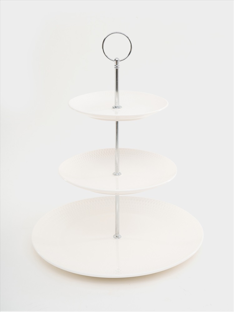 Подставка для пирожных, 15х18,5х27/35 см, 3 яруса, фарфор P, белая, Diamonds. Материал: фарфор Рorcelain. Мыть теплой водой с применением жидких моющих средств. Можно использовать в СВЧ (тарелки) и посудомоечной машине.