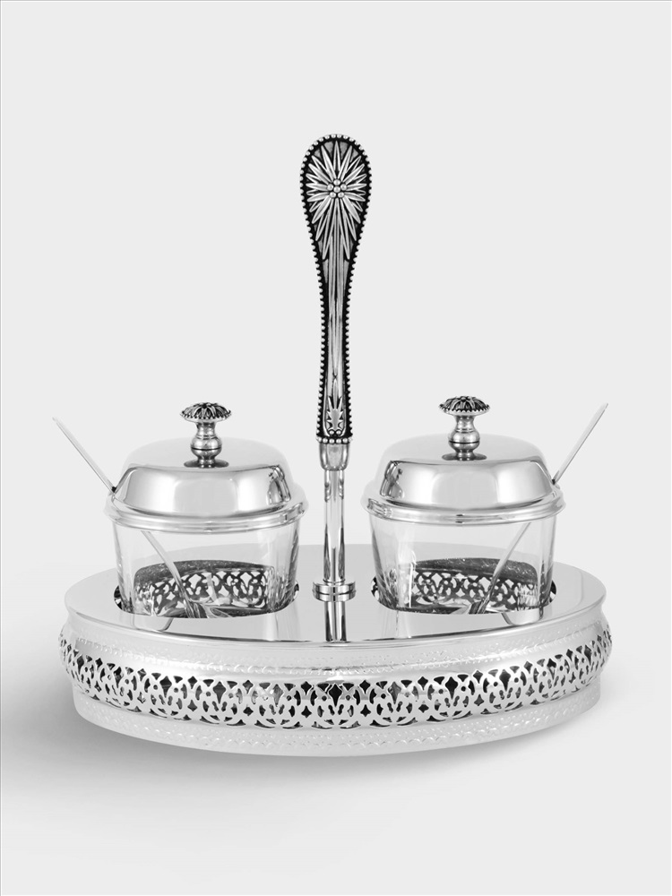 Вазочка для джема, 2 штуки, на подставке. Комплектация и размеры: подставка, 1 шт - 21х14х21 см; вазочка, 2 шт - 200 мл, ложка, 2 шт - 13 см. Материал: стекло, нержавеющая сталь. Рекомендации по уходу: мыть вручную с применением мягких моющих средств. Не использовать для ухода абразивные чистящие средства и жёсткие губки. Стеклянное блюдо можно мыть в посудомоечной машине на щадящем режиме для стекла.