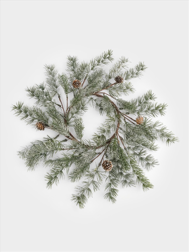 Венок декоративный. Внутренний размер: 16 см. Внешний размер: 48 см. Материал: пластик, шишки, металл. Предназначен для декорирования интерьера. Рекомендуется сухая чистка.