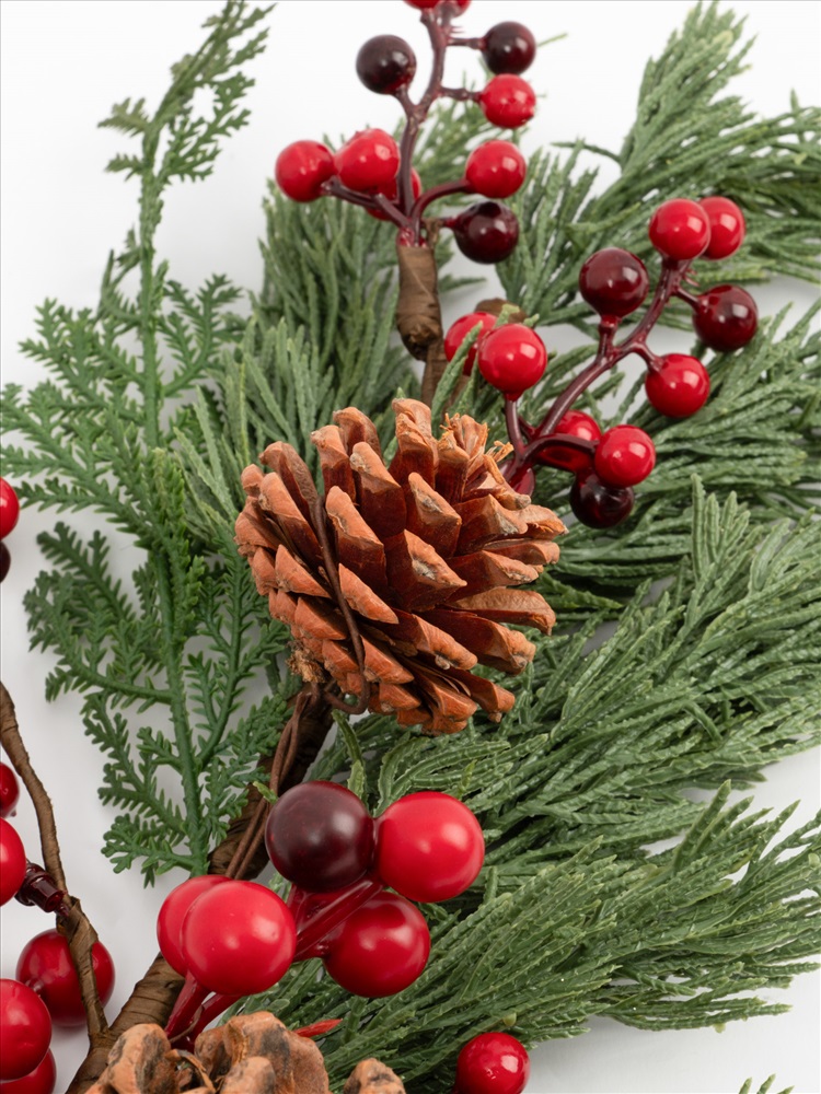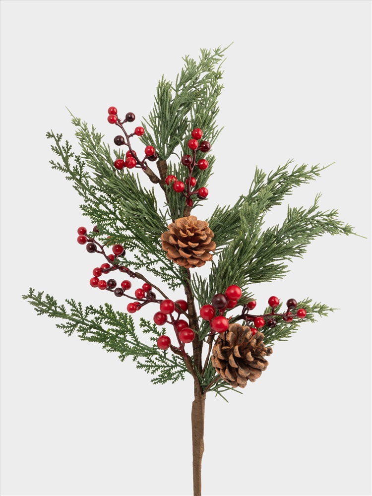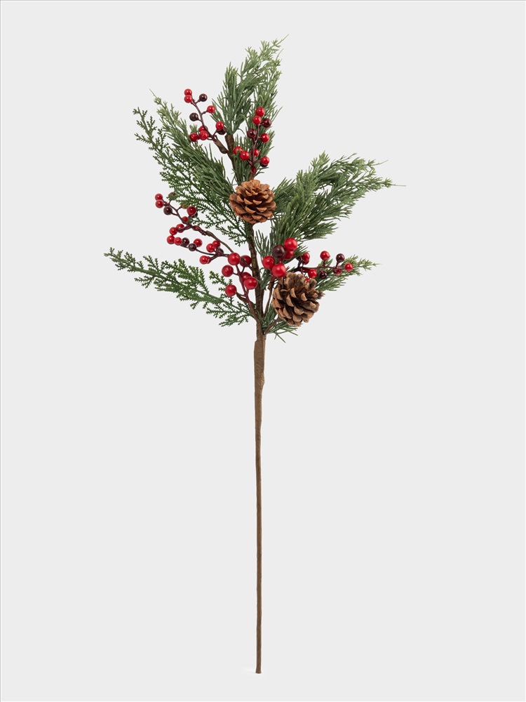 Ветка декоративная. Размер: 73 см. Материал: пластик, пенопласт, бумага, шишки, металл. Предназначена для декорирования интерьера. Рекомендуется сухая чистка.