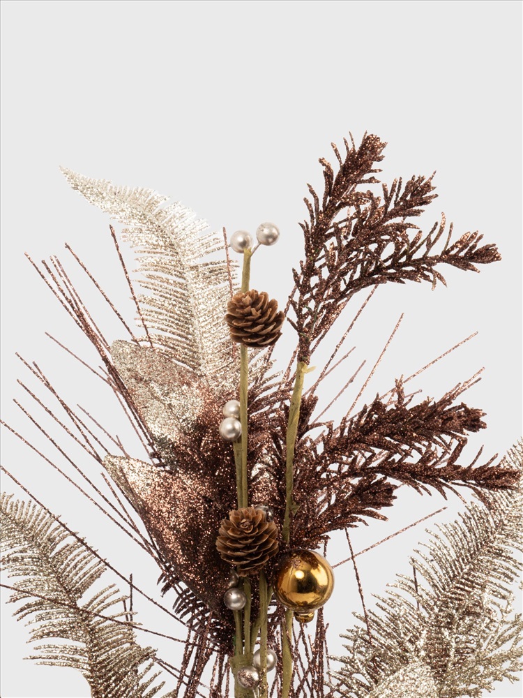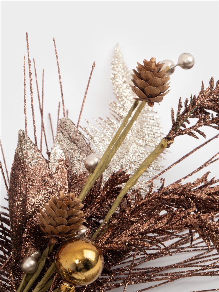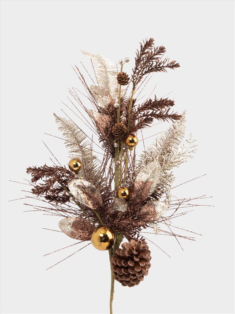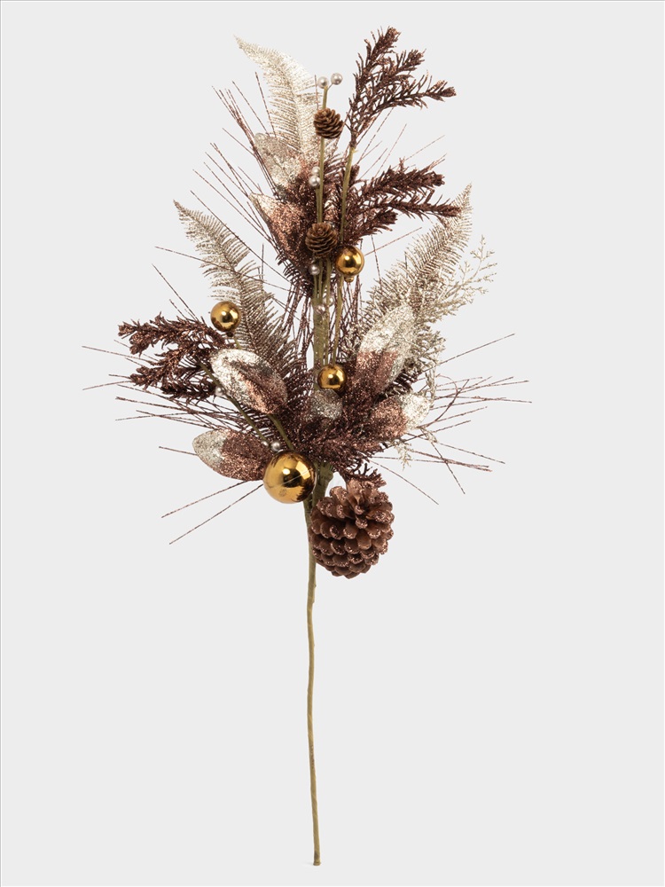Ветка декоративная. Размер: 75 см. Материал: пенопласт, полиэстер, шишки, бумага, металл. Предназначена для декорирования интерьера. Рекомендуется сухая чистка.