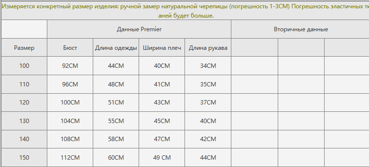 Размер: 100, 110, 120, 130, 140, 150