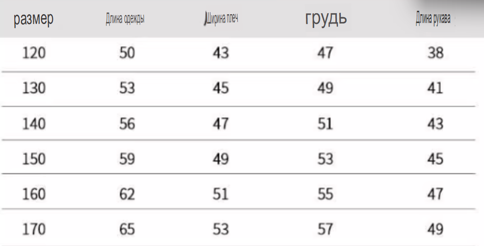 Размер: 110, 120, 130, 140, 150, 160, 170