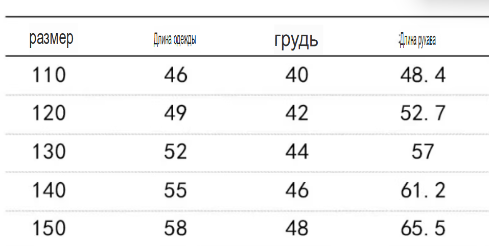 Размер: 110, 120, 130, 140, 150