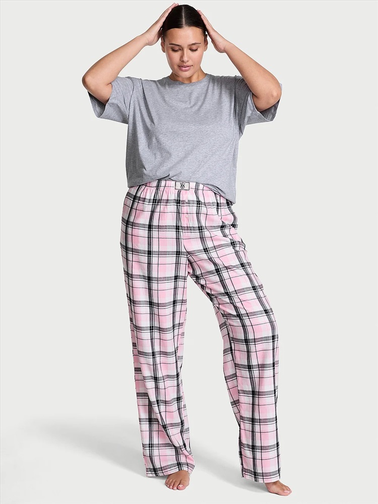 Victoria's Secret Flannel Short-Sleeve Long Tee-Jama Set
