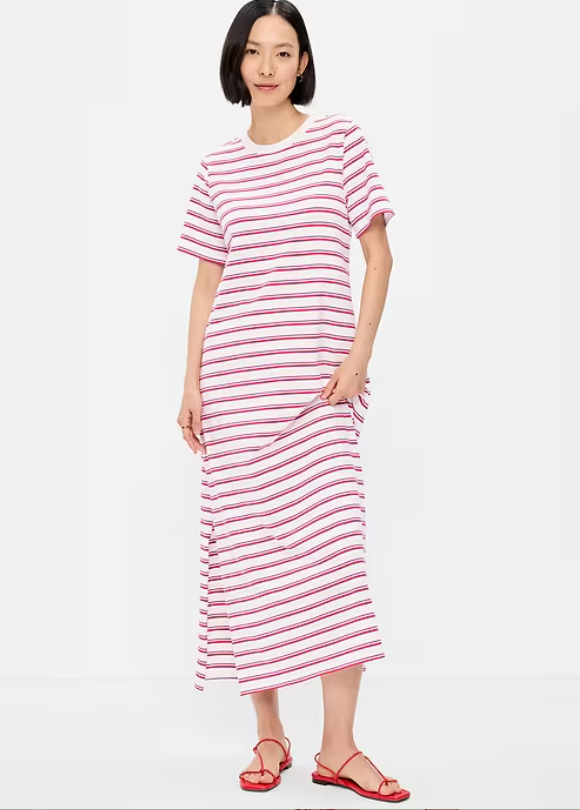 Vintage Crew-Neck Maxi T-Shirt Dress