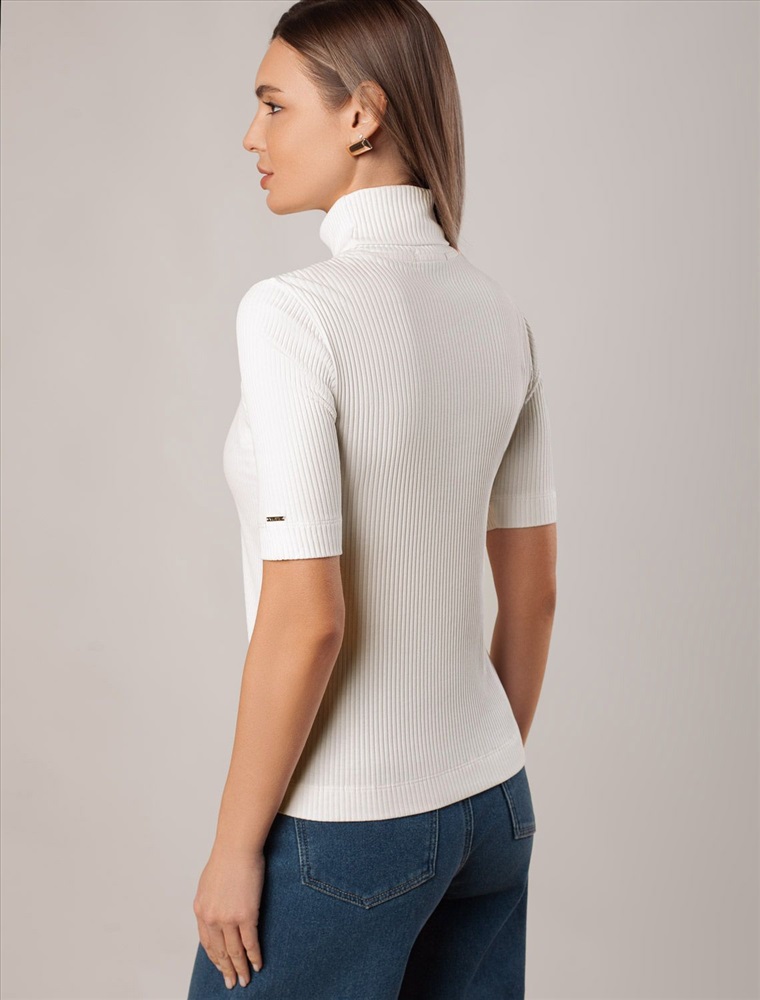 Плотность: 230 Г/м2 Параметры модели на первом фото: Рост 172, бюст 88, талия 64, бедра 88 Водолазка с коротким рукавом выполнена из фактурного трикотажа в рубчик. Модель идеально сидит по фигуре не сковывая движения. Хлопковый трикотаж поддерживает оптимальную температуру тела, поэтому в изделии будет комфортно в течении всего дня. Наличие эластана в составе гарантирует формоустойчивости. Водолазка отлично впишется в деловой дресс-код и подойдет для повседневного аутфита. Комментарии к товару