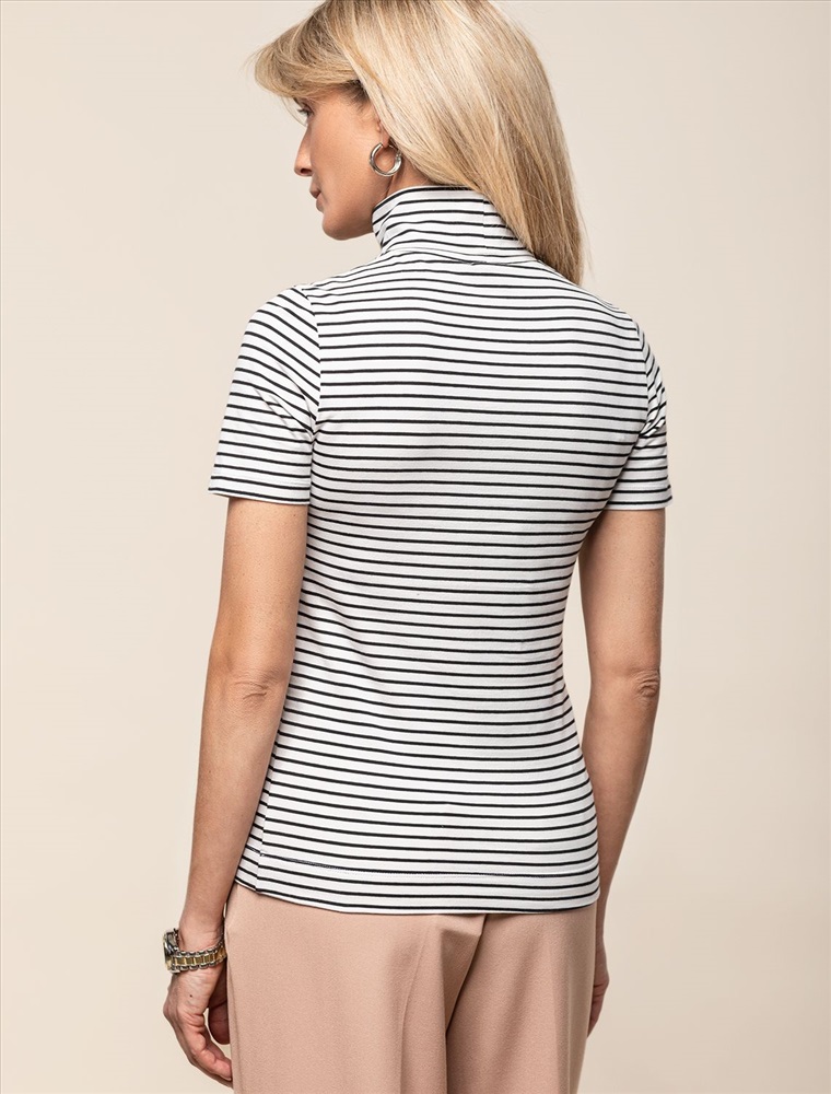 Параметры модели на первом фото: Рост 172, бюст 88, талия 64, бедра 88 Водолазка с коротким рукавом выполнена из премиального хлопка с добавлением эластана. Гладкий трикотаж обеспечит гарантированный комфорт и удобство в использовании. Внизу изделия металлическая нашивка с логотипом бренда. Совет стилиста: водолазка может заменить рубашку в нестрогом офисном образе или подружиться с джинсами-трубами, жилетом и кедами в расслабленном повседневном наряде. Комментарии к товару