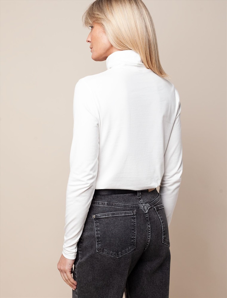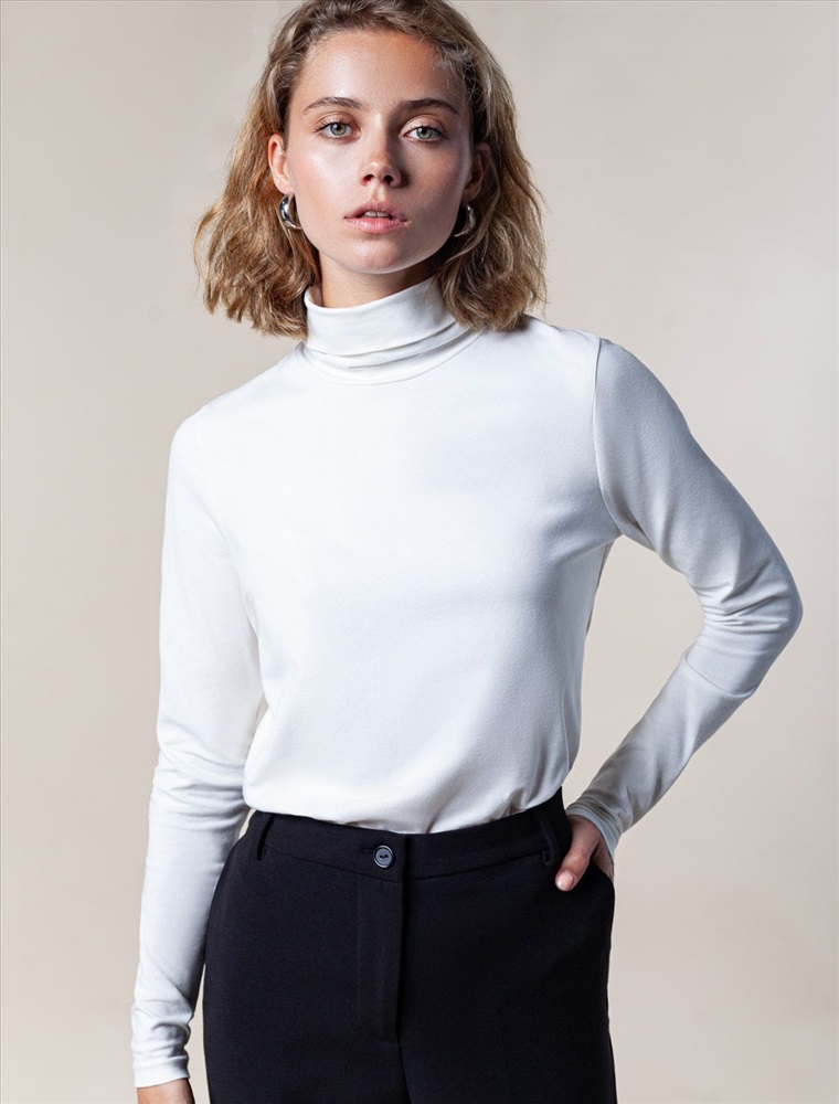 Базовая белая водолазка выполнена из премиального хлопка с добавлением эластичных волокон. Гладкий трикотаж обеспечит гарантированный комфорт и удобство в использовании. Внизу изделия металлическая нашивка с логотипом бренда. Совет стилиста: водолазка может заменить рубашку в нестрогом офисном образе или подружиться с джинсами-трубами, жилетом и кедами в расслабленном повседневном наряде.