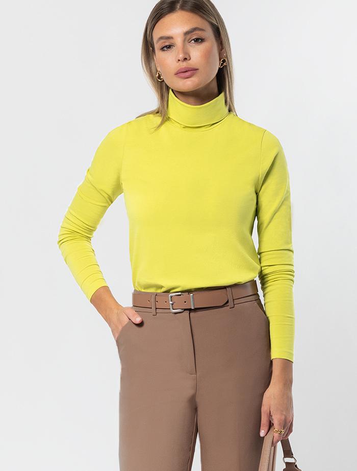 Параметры модели на первом фото: Рост 172, бюст 88, талия 64, бедра 88 Яркая лаймовая водолазка выполнена из премиального хлопка с добавлением эластичных волокон. Гладкий трикотаж обеспечит гарантированный комфорт и удобство в использовании. Внизу изделия металлическая нашивка с логотипом бренда. Совет стилиста: водолазка может заменить рубашку в нестрогом офисном образе или подружиться с джинсами-трубами, жилетом и кедами в расслабленном повседневном наряде. Комментарии к товару