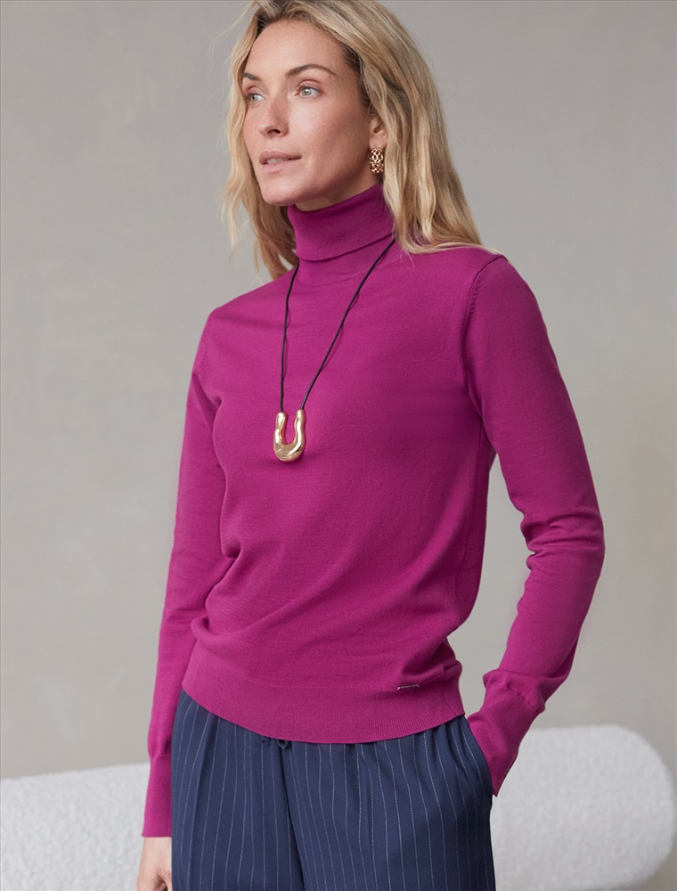 Водолазка тонкой вязки выполнена из хлопка. Лаконичная модель дополнена манжетами с золотистыми пуговицами. Изделие не сковывает движений и подходит для любой фигуры. Мягкая пряжа очень приятная к телу не колется и сохраняет тепло при этом не перегревая.