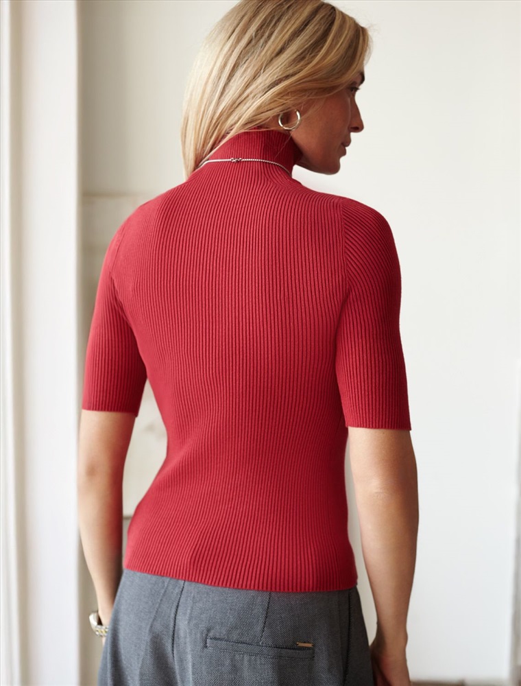 Плотность: 12 GG Параметры модели на первом фото: Рост 172, бюст 88, талия 64, бедра 88 Размер товара на первом фото: 42 Водолазка тонкой вязки в рубчик выполнена из хлопка. Лаконичная модель с коротким рукавом дополнена металлическим логотипом бренда. Изделие идеально сидит по фигуре и не сковывает движений. Мягкая пряжа очень приятная к телу не колется и сохраняет тепло при этом не перегревая. Комментарии к товару