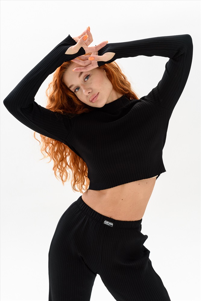 Застежка: без застежки Стильный топ-предмет гардероба для женщин, который подчеркивает привлекательность и элегантность. Кроп топ с длинными рукавами и разрезами для пальца выполнен из качественного приятного к телу трикотажа. Укороченный топ дает разнообразие стилей, от повседневных и спортивных до формальных и вечерних. Сочетается с джинсами, юбками или брюками создавая модный образ.