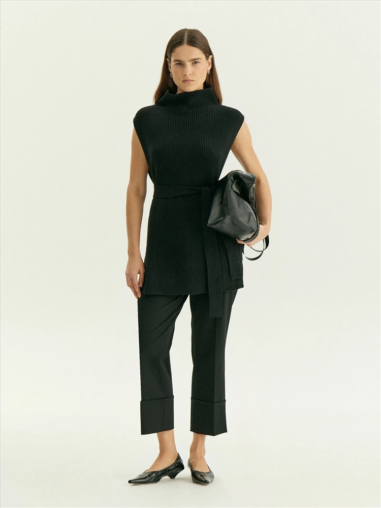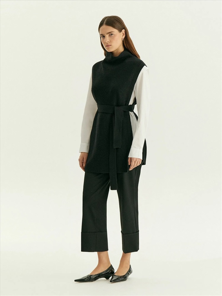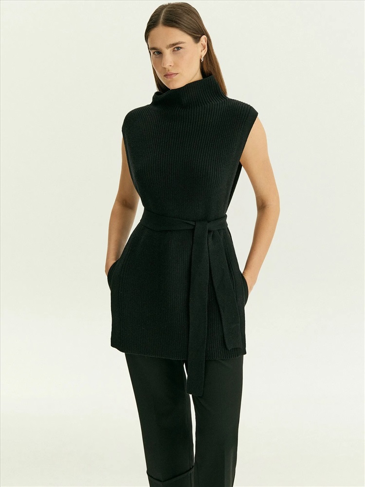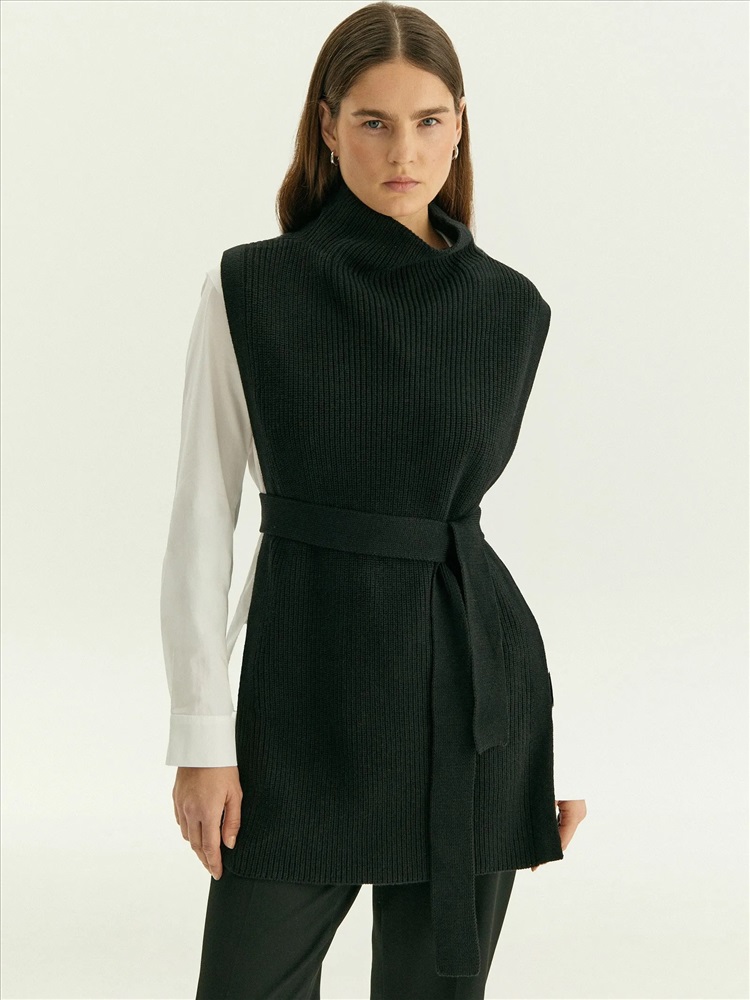Длина: 82,5 см. Цвет: черный Силуэт: приталенный Сезон: демисезон Рукав: без рукава Застёжка: без застежки Рост модели: 175-178 См 55% нейлон, 20% полиэстер, 16% акрил, 9% шерсть Комментарии к товару