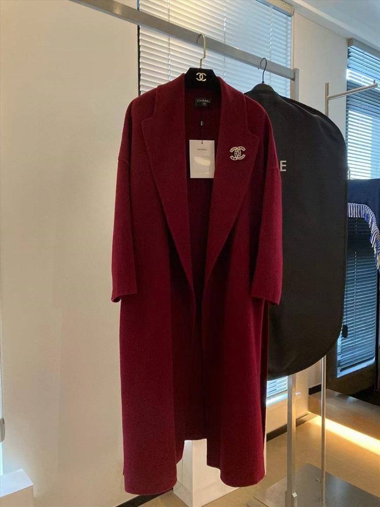 Высококачественная 90 ультратонкая шерсть + 10 кашемир] Высококлассное пальто-халат CHANE'L, этот цвет очень красивый. Верхняя часть французского бордоского красного цвета абсолютно роскошна и элегантна, с небольшой ароматной бриллиантовой брошью, изысканная и красивая, 100% ультратонкая шерстяная ткань, мягкая ~ Один размер подходит всем, обхват груди 120, длина 112, , флэш-распродажа