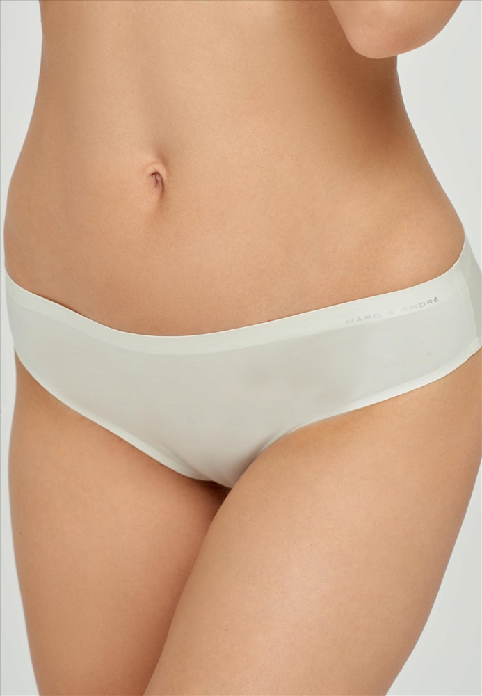 Бесшовные хлопковые трусы-бразилиана со средней линией талии.
