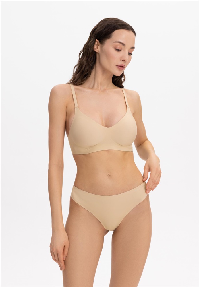 Бесшовный бескаркасный тонкий бюстгальтер. Абсолютное ощущение комфорта. Съемные тонкие вкладыши. Круглая спинка. Регулируемые бретели. Бюстгальтер выполнен из одной цельной детали.Технология «Sewfree».