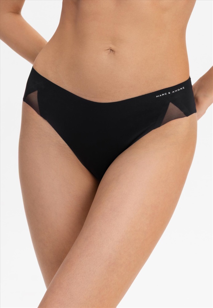 Трусы-бразилиана со средней линией талии. Мягкая эластичная тесьма по верхнему краю. Передняя деталь из микрофибры.