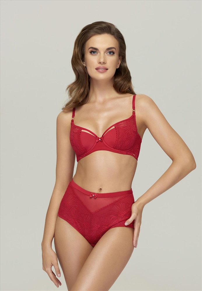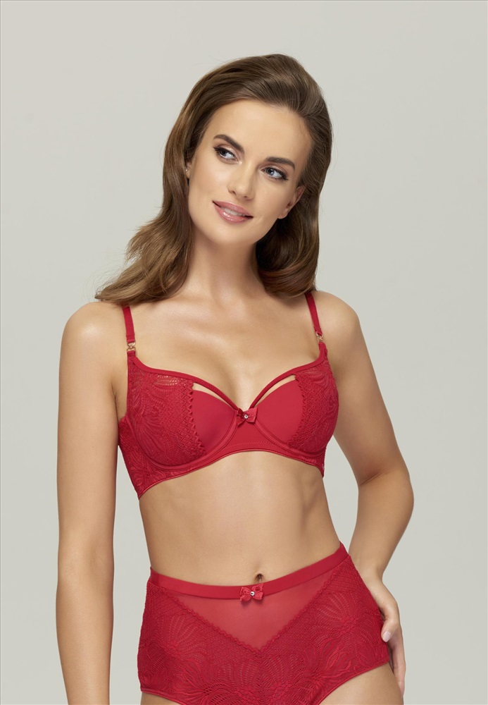 Бюстгальтер с полудублированной поролоновой чашкой на каркасной поддержке. Чашка декорирована эластичным кружевом с ажурными краями. Чашка с внутренней стороны выполнена из хлопка. Боковые косточки