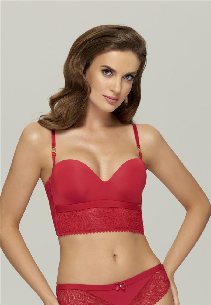 Бескаркасный полукорсет с формованной чашкой и встроенным «Super пуш-ап». Отделка с эффектом «скрытого каркаса». Широкий стан дублирован эластичной сеткой. Боковые детали с поддерживающими косточками. Силиконовая лента