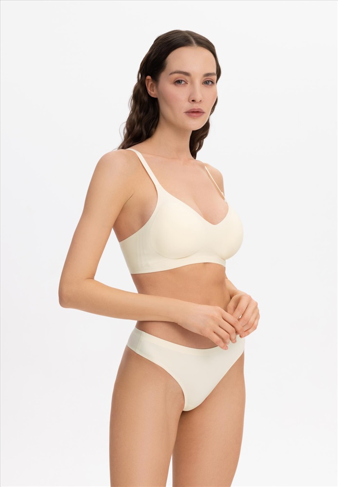 Бесшовный бескаркасный тонкий бюстгальтер. Абсолютное ощущение комфорта. Съемные тонкие вкладыши. Круглая спинка. Регулируемые бретели. Бюстгальтер выполнен из одной цельной детали.Технология «Sewfree».