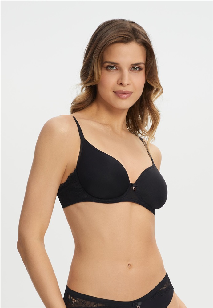 Бюстгальтер с формованной чашкой «Spacer» на каркасной поддержке. Кружевной стан на подкладке из сетки.