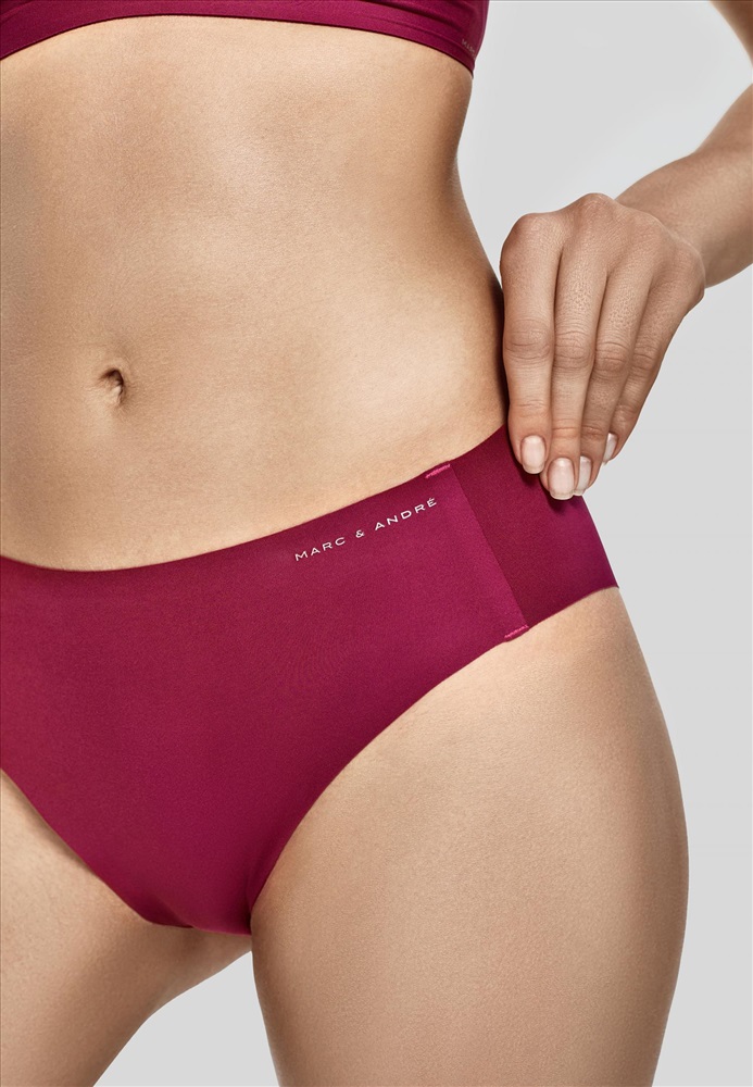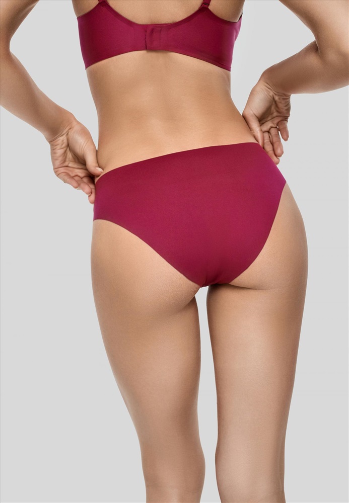 Бесшовные трусы-бразилиана со средней линией талии. По бокам декоративные вставки из сетки. Технология «Laser Cut».