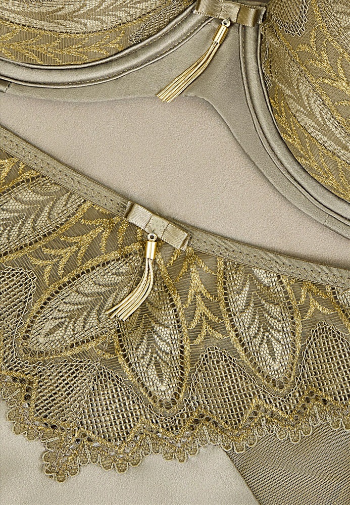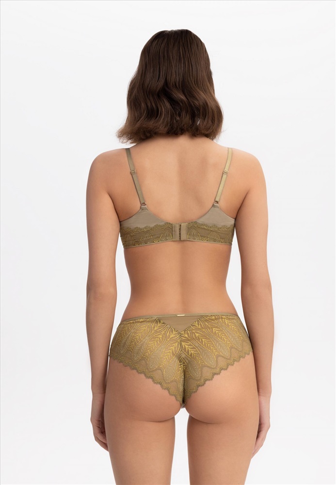 Трусы-бразилиана со средней линией талии. Передняя деталь из атласной микрофибры и кружева. Задняя деталь из кружева с ажурными краями.