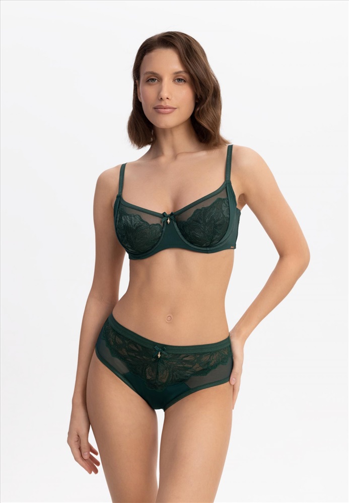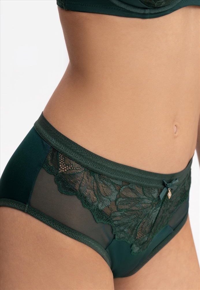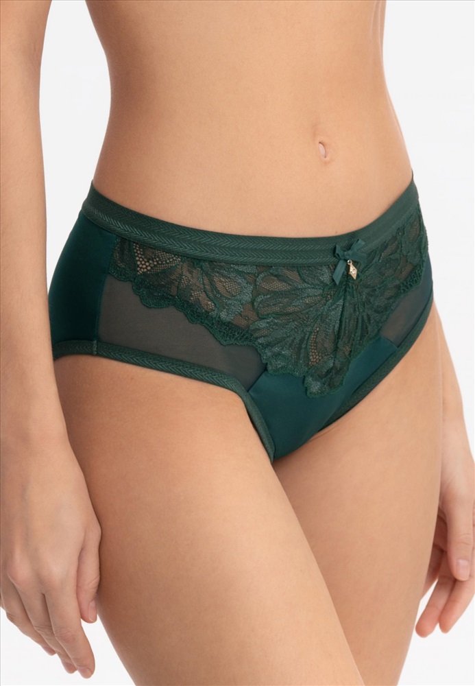 Трусы-брифы со средней линией талии. Пояс выполнен из эластичной тесьмы Передняя деталь: сочетание кружева и микрофибры. Задняя деталь из микрофибры.