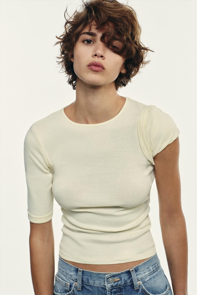 SLIM FIT - ROUND NECK - REGULAR LENGTH - THREE-QUARTER SLEEVES COMPOSITION, CARE & ORIGIN COMPOSITION OUTER SHELL 100% cotton Which contains at least: OUTER SHELL 100% OCS certified organically grown cotton CERTIFIED MATERIALS OCS CERTIFIED ORGANICALLY GROWN COTTON This fibre is produced using no artificial fertilisers or pesticides and is grown from seeds that have not been genetically modified. We are currently working with the Organic Content Standard (OCS) that monitors the process from the source to the end product. Certified by Intertek 193341 More information CARE Caring for your garments to extend their useful life. Lower temperature washes and delicate spin cycles are gentler on garments and help to protect the colour, shape and structure of the fabric.
