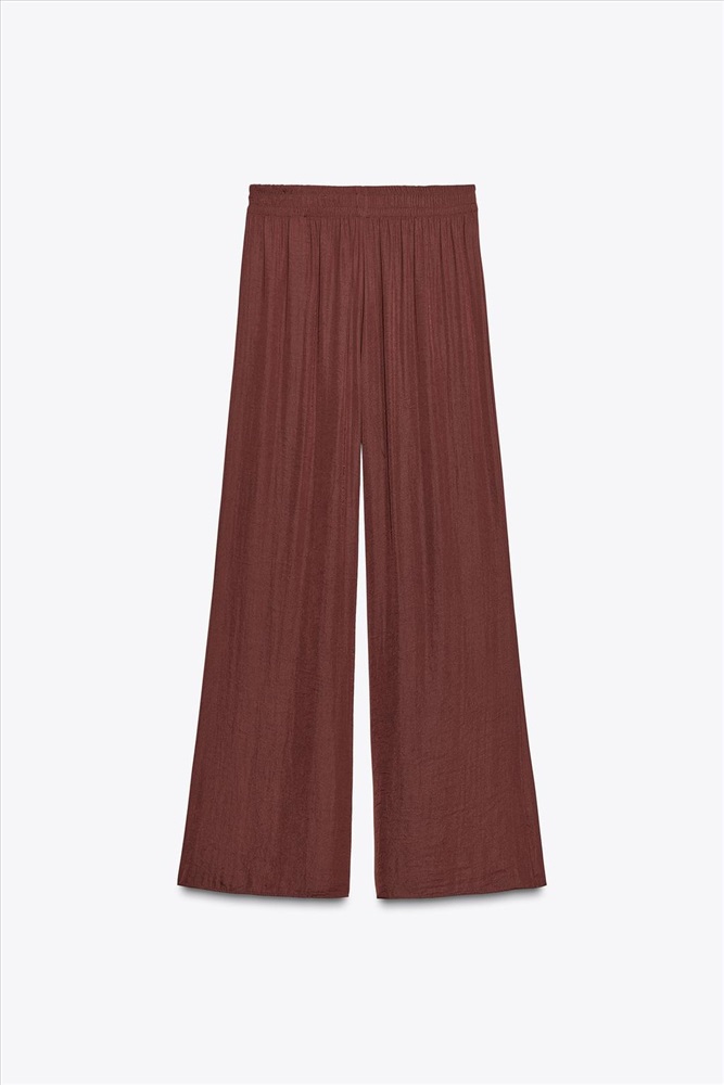 High-waist trousers with an elastic waistband. Side seam pockets. Wide leg. COMPOSITION, CARE & ORIGIN COMPOSITION OUTER SHELL 100% polyester Which contains at least: OUTER SHELL 100% RCS certified recycled polyester CERTIFIED MATERIALS RCS CERTIFIED RECYCLED POLYESTER Nowadays, recycled polyester is mainly made from PET plastic waste. This is a type of plastic that is widely used in a variety of items, such as plastic bottles. Using recycled materials helps limit the production of virgin polyester fibre. It is certified to the Recycled Claim Standard (RCS), which verifies the recycled content and tracks it from source to final product. Certified by Intertek 193341 More information CARE Caring for your garments to extend their useful life. Lower temperature washes and delicate spin cycles are gentler on garments and help to protect the colour, shape and structure of the fabric.
