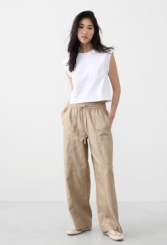 Wide-Leg Mid-Rise Cargo Pull-On Pant