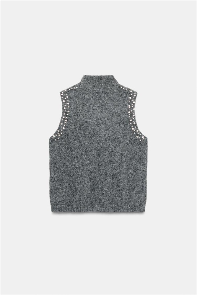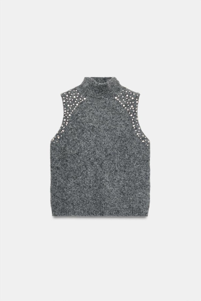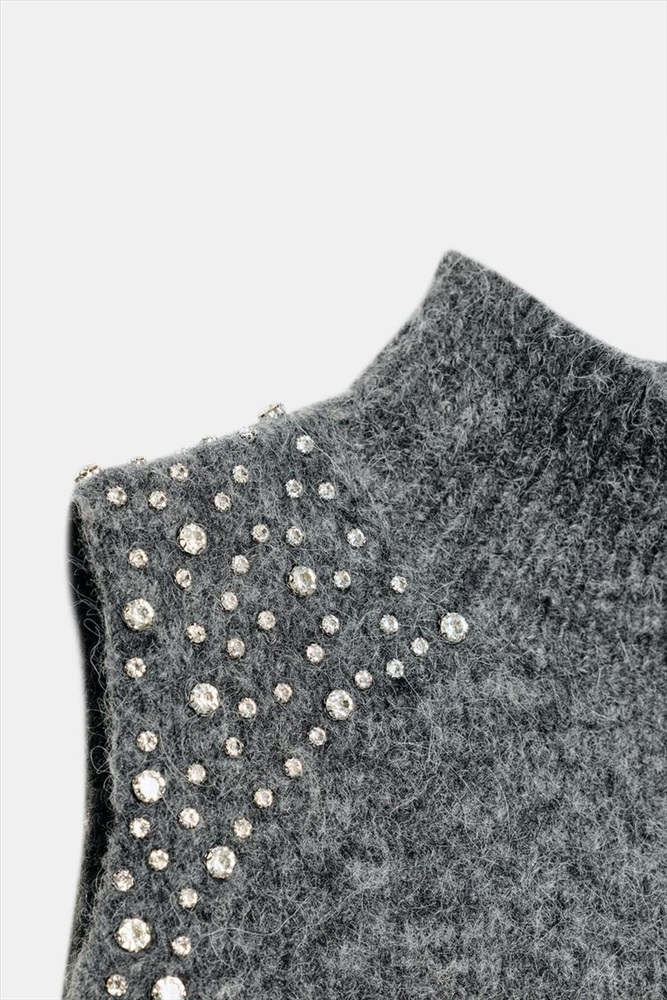 WOOL BLEND TOP WITH RHINESTONE BEADS