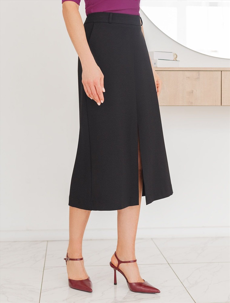Плотность: 390 Г/м2 Юбка А-силуэта выполнена из джерси. Модель дополнена шлевками для пояса, высоким разрезом спереди и боковыми карманами. Изделие хорошо держит форму, отлично тянется и почти не мнется во время использования. Идеальный вариант в офис или в повседневный классический стиль. Комментарии к товару