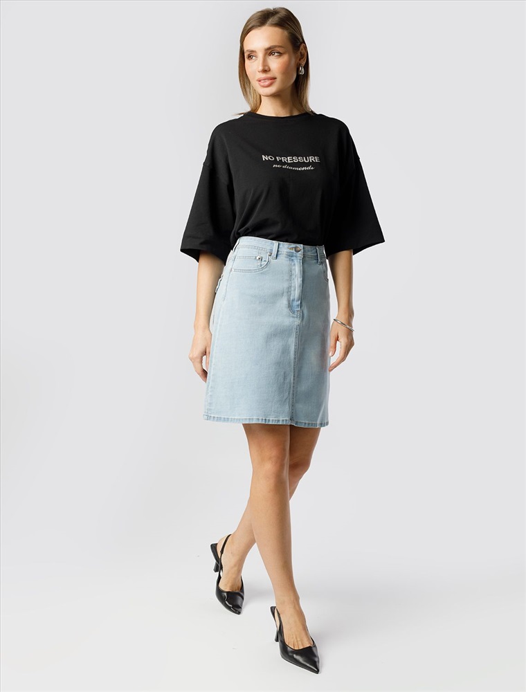 Плотность: 10.9 OZ Параметры модели на первом фото: Рост 172, бюст 88, талия 64, бедра 88 Юбка А-силуэта с декоративной стиркой выполнена из эластичного денима. Модель дополнена пятью карманами как у джинс и брендированным патчем на поясе. Правый задний карман с клапаном. За счет эластана изделие хорошо тянется и гарантирует комфорт и формоустойчивость. Подходит для любой фигуры. Комментарии к товару