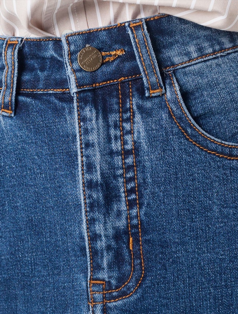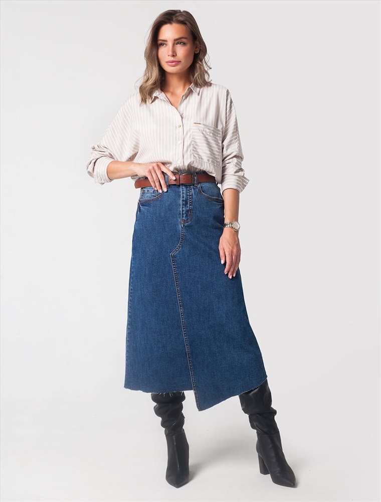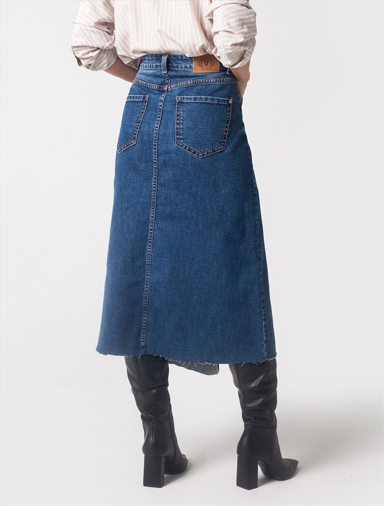 Состав: 98%Хлопок 2%ПУ Юбка деним - удобный элемент любого гардероба. Посадка на талии. Ассиметричная с не обработанным низом.Такой силуэт удобен в любом размере и украшает фигуру. В заправку акцентрирует талию, в любых луках скрывает недостатки.Ткань со стиркой выглдяит дорого и роскошно. Юбка украшена фирменной фурнитурой VILATTE.