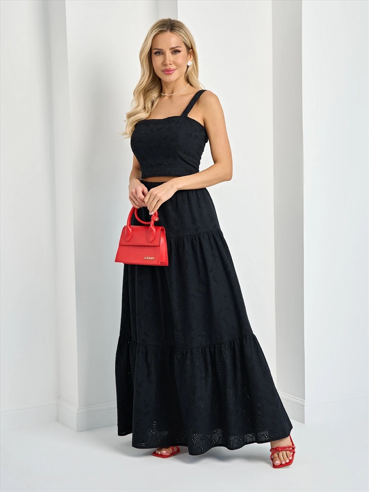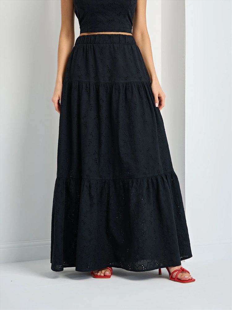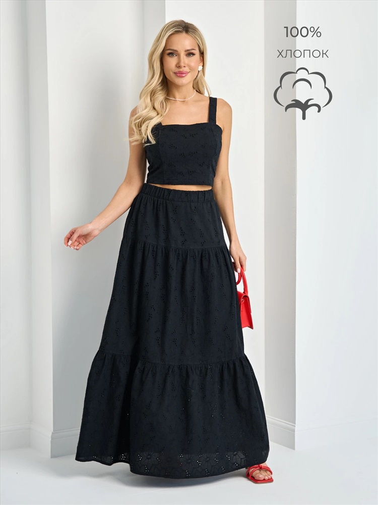 Ярусная юбка длины макси с подкладом.
