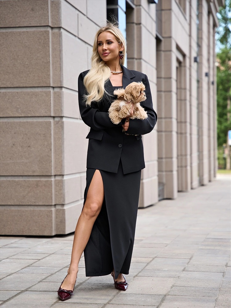 Трикотажная юбка длины миди с внутренним поясом из резинки.