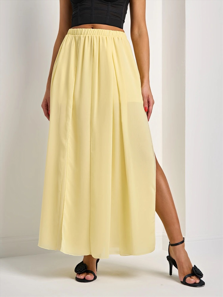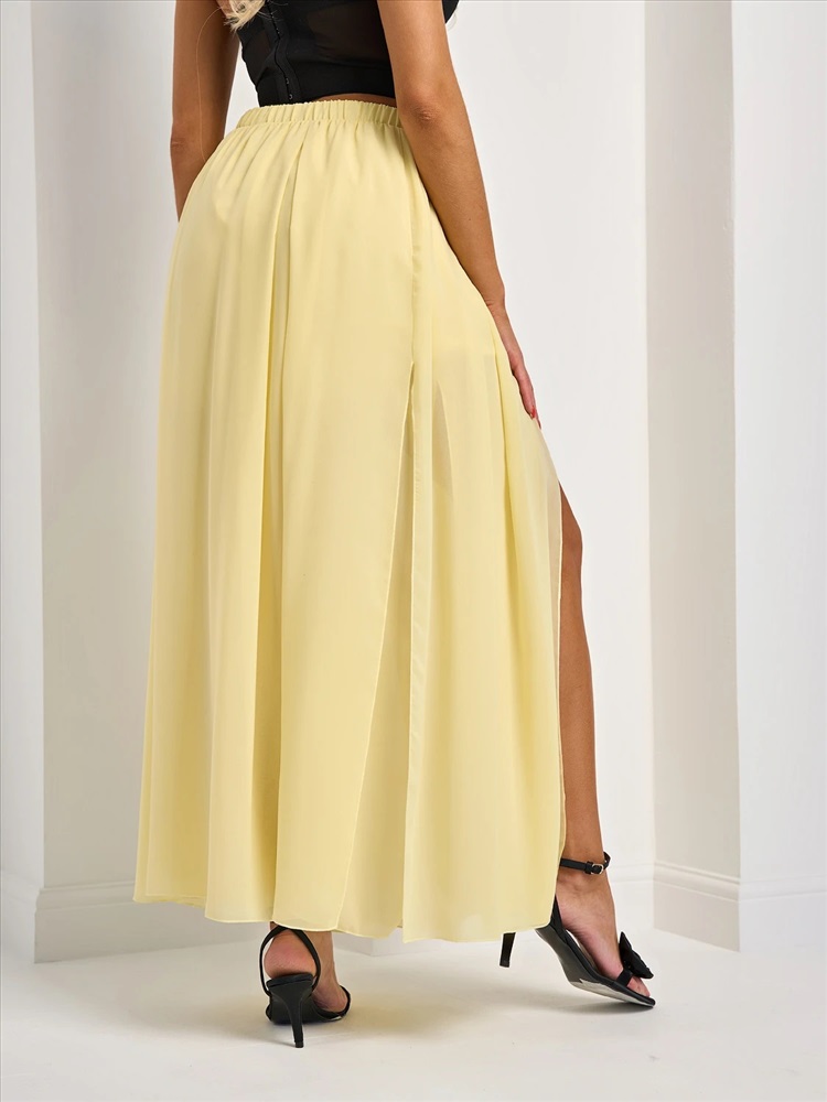 Двойная ткань + шортики. В боковых швах и по переду изделия разрезы. Пояс на резинке. Комментарии к товару