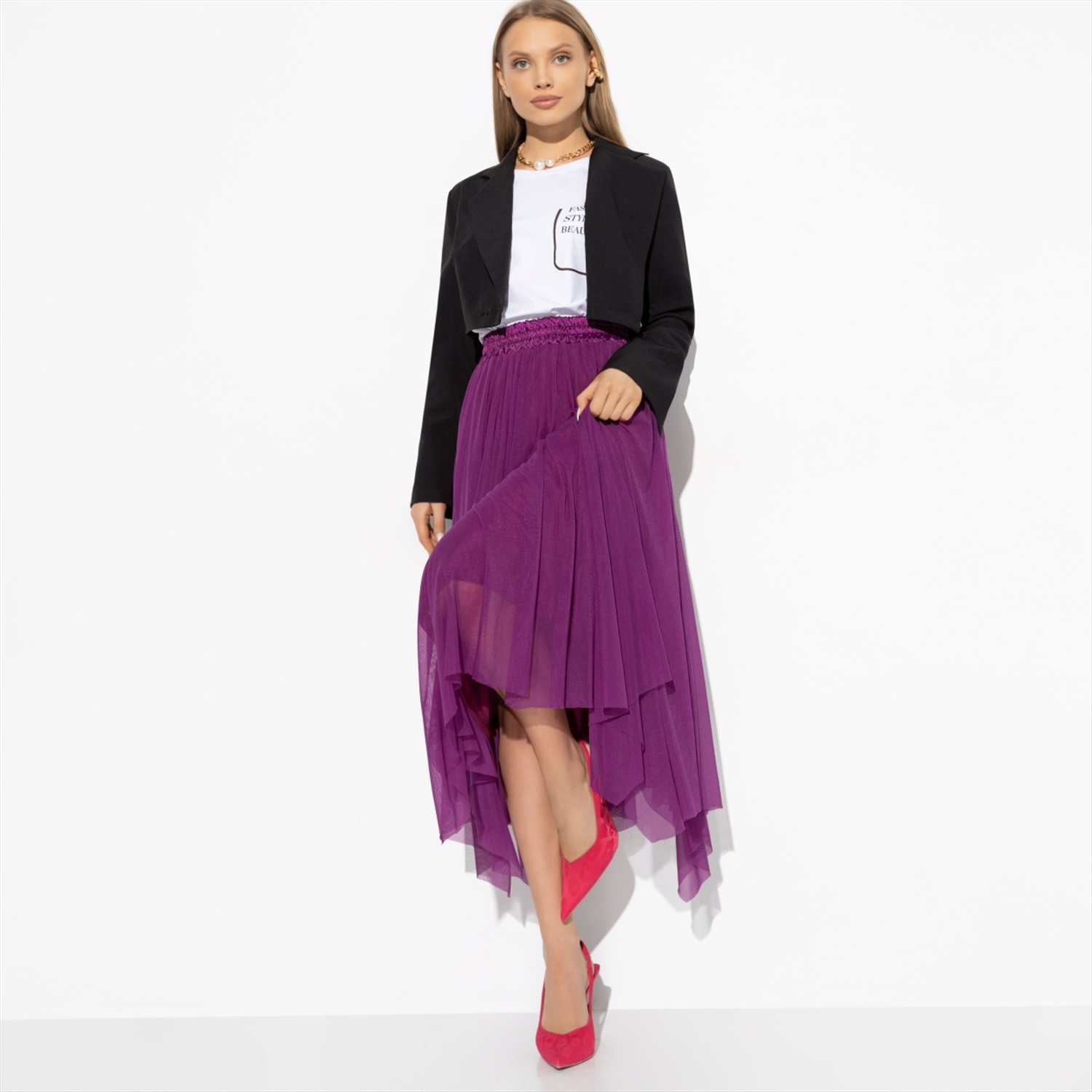 Позвольте представить вам уникальное изделие для модных и уверенных в себе женщин — юбку «Экстремально прекрасна (cabaret)». Эта модель произведена из высококачественных тканей: сетка стрейч, трикотаж вискоза и сатин креш, что гарантирует ей исключительное сочетание комфорта и стиля. Яркий ягодный оттенок притягивает взгляды и окутывает ауру загадочности и изысканности. Именно в этой юбке каждая женщина сможет выразить свою индивидуальность и оригинальность. Оптом этот товар станет настоящей находкой для магазинов и бутиков, стремящихся предложить своим клиентам эксклюзивные вещи, которые вдохновляют и преображают. Стилистический комментарий подтверждает силу этой юбки: любовь с первого взгляда — реальность, и дизайнеры CHARUTTI это доказывают. Они создали модель, которая не просто одевает, а позволяет женщине чувствовать себя центром внимания на любой вечеринке или мероприятии. Именно эта невероятно красивая юбка деликатно подчеркивает женственность и придаёт фигуре лёгкость, струящуюся грацию. Вопреки ожиданиям, подобный эффект достигается всего лишь одним элементом гардероба, что делает её незаменимой для практичных модниц. При покупке оптом она станет настоящим бонусом для вашего бизнеса, ведь никто не устоит перед соблазном обладать этим модным произведением искусства. Юбка «Экстремально прекрасна (cabaret)» создана для тех, кто готов открывать двери в мир моды. Гладкая текстура и эластичность сетки стрейч буквально продлевают движение и придают уверенности каждой хозяйке этой удивительной вещи. С волшебным эффектом трикотажа из вискозы и мягким блеском сатина креш, эта юбка становится обязательным элементом гардероба. Она подходит для разнообразных образов — от яркого вечернего выхода до утонченного делового комплекта. Сделав оптовый заказ, вы дадите возможность вашим клиентам самим испытать обаяние этой великолепной юбки, и она непременно станет лидером продаж в вашем магазине. Комментарии к товару