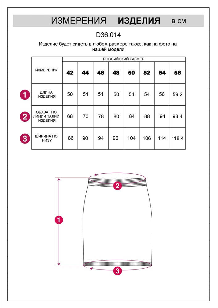 Параметры модели на первом фото: Рост 170, бюст 83, талия 64, бедра 88 Длина юбок увеличивается в зависимости от размера! (В 50+ размере юбка будет приблизительно по колено) Юбка фактурной вязки выполнена из мягкой хлопковой пряжи с добавлением акрила. Изделие дополнено трикотажной подкладкой, в поясе вставлена эластичная резинка, что гарантирует абсолютный комфорт при носке. Комментарии к товару