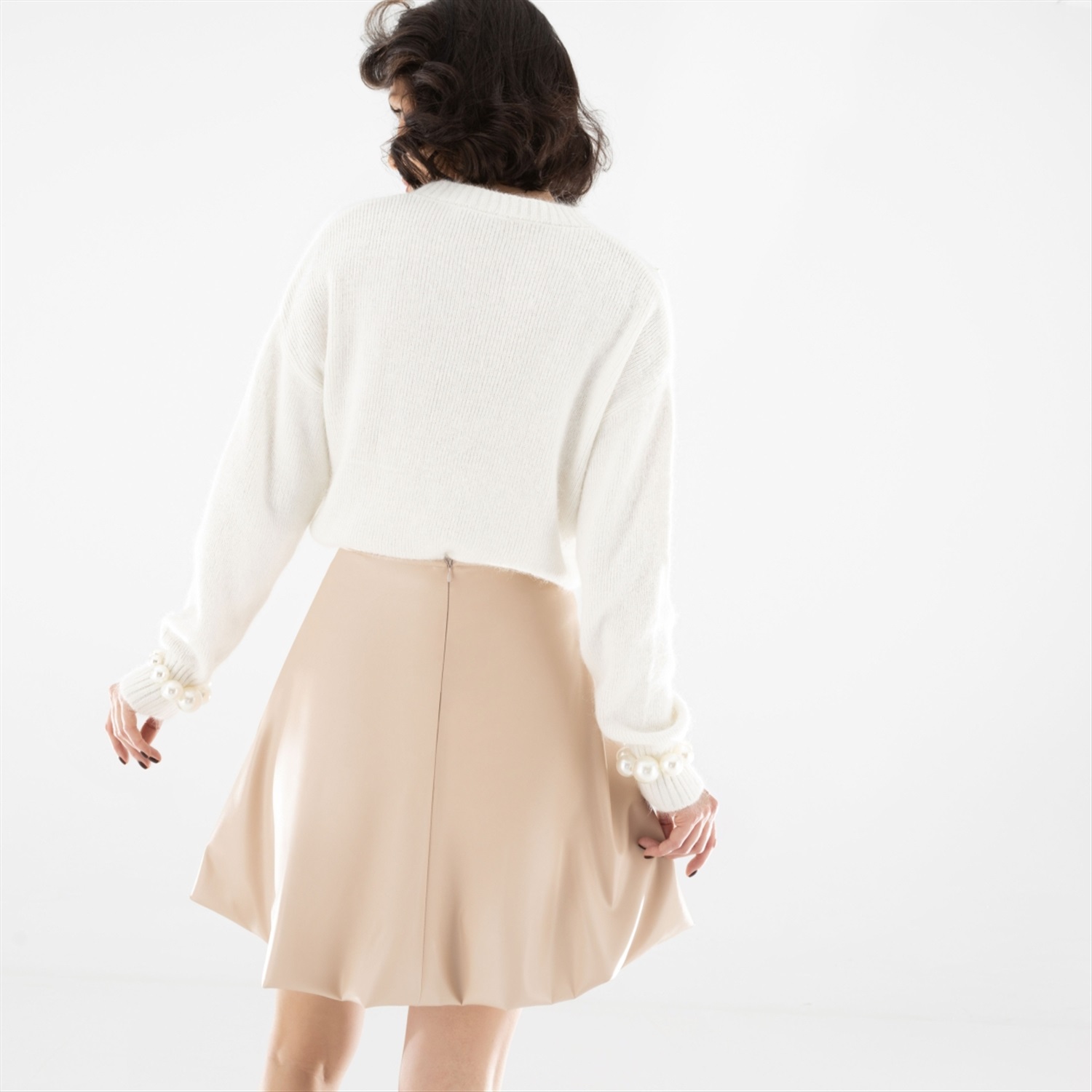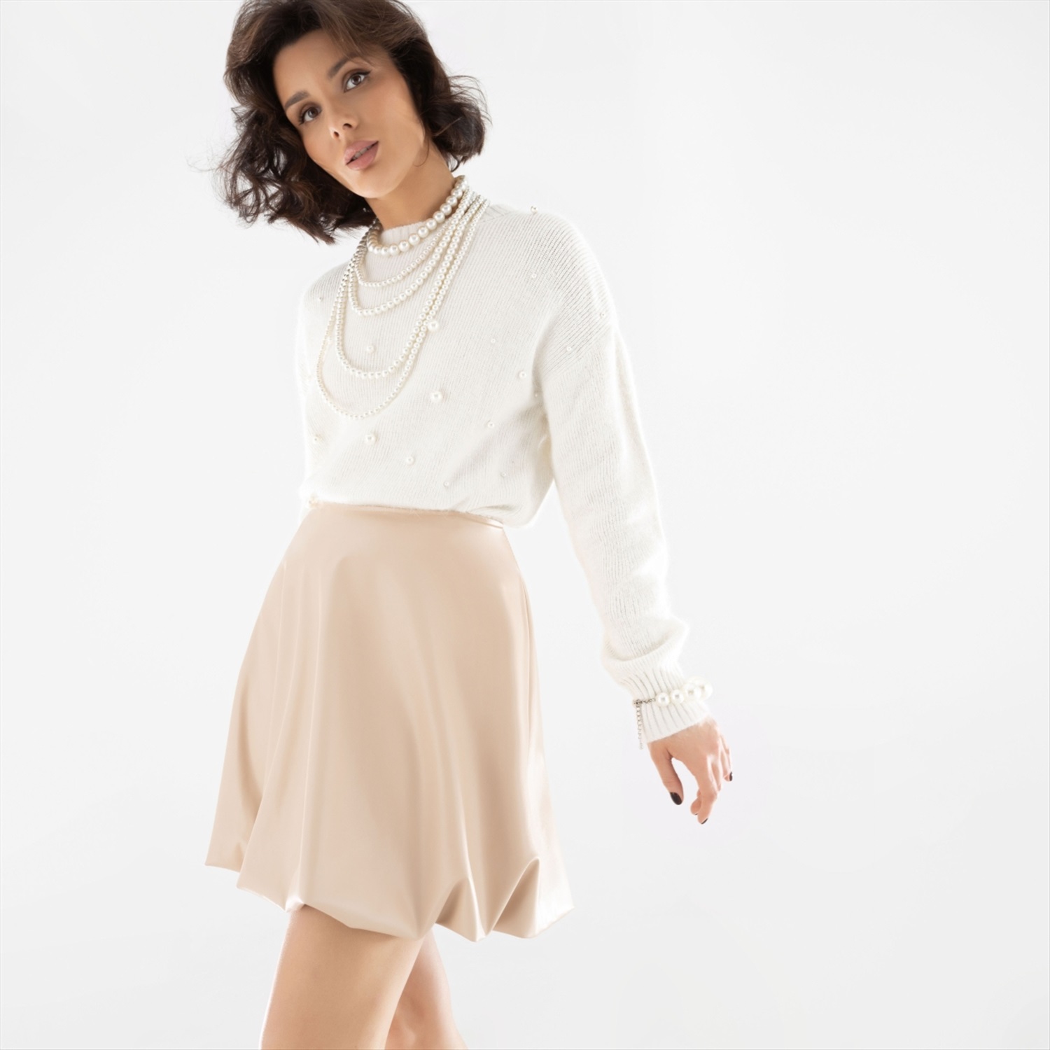 Состав: Экокожа, трикотажный подклад (55% п/у волокно, 45% полиэстер) Плотность ткани: Средняя Тип ткани: Текстиль, трикотаж Вид застежки: Молния Карманы: Нет Основной цвет ткани: Бежевый Отрезная талия: Нет Подклад: Есть Резинка по талии: Нет Рисунок/раппорт: Нет, все изделия идентичны Сезон: Демисезон Силуэт: Свободный Стиль: Нарядный Фасон юбки: Баллон Фасон юбки: Баллон Параметры модели на фото:
