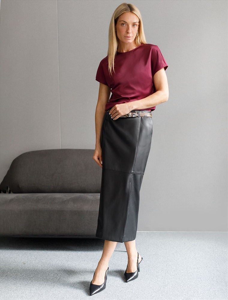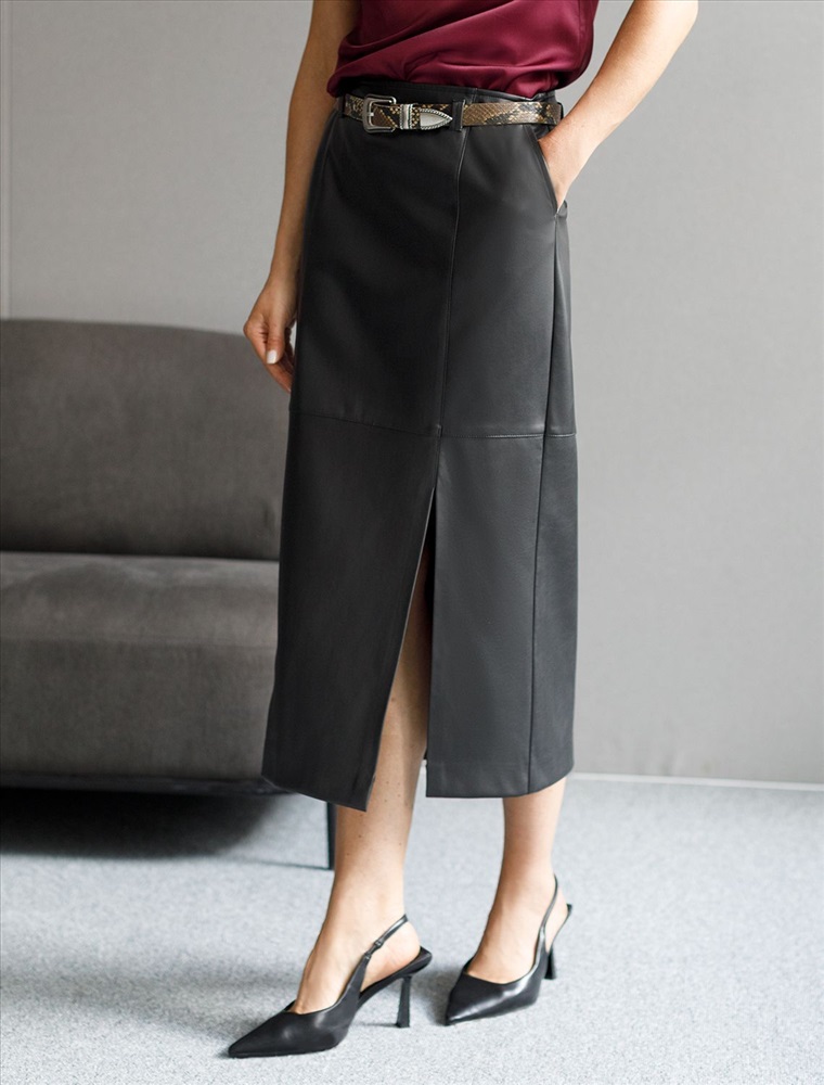 Идеальный выбор для дерзкого и женственного образа. Облегающий силуэт юбки-карандаш в черном цвете подчеркивает фигуру, а разрез сбоку чуть выше колена добавляет нотку соблазна и удобство при ходьбе. Мягкая обтачка пояса с изнаночной стороны обеспечивает комфорт. Качественная искусственная кожа выглядит дорого, сохраняя эластичность и износостойкость.