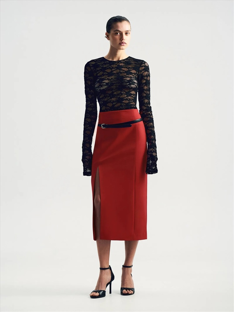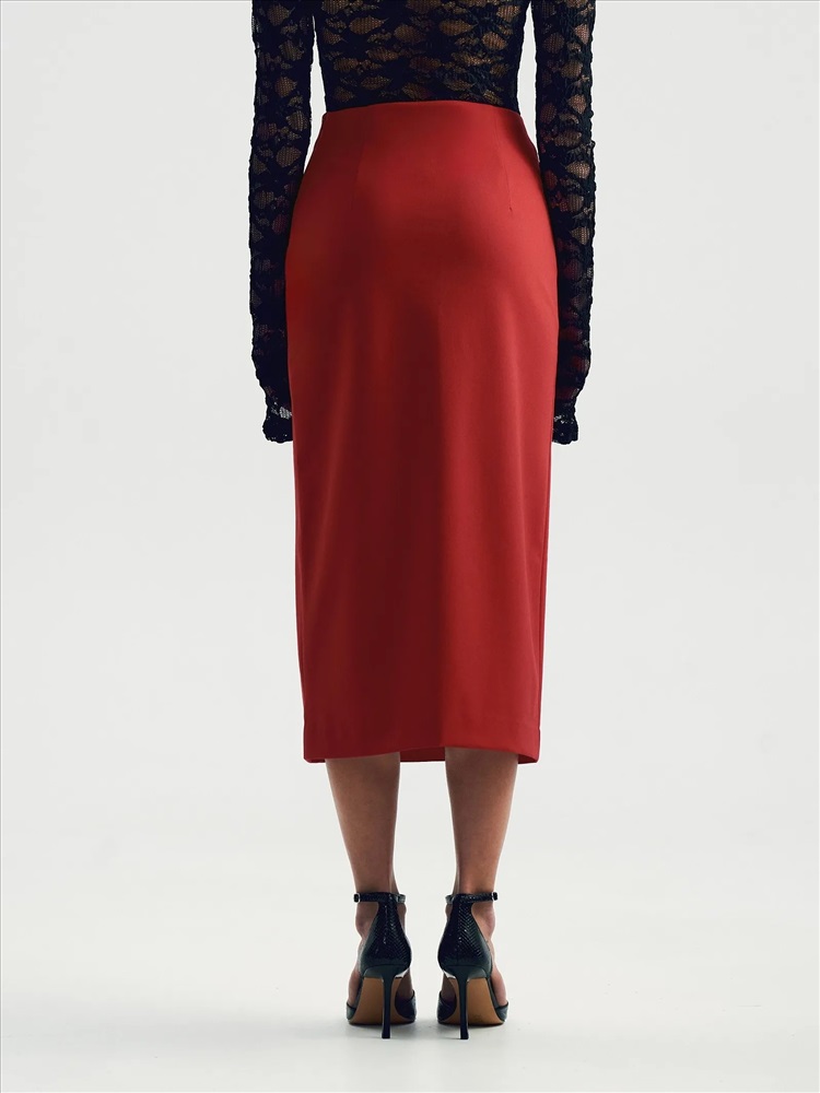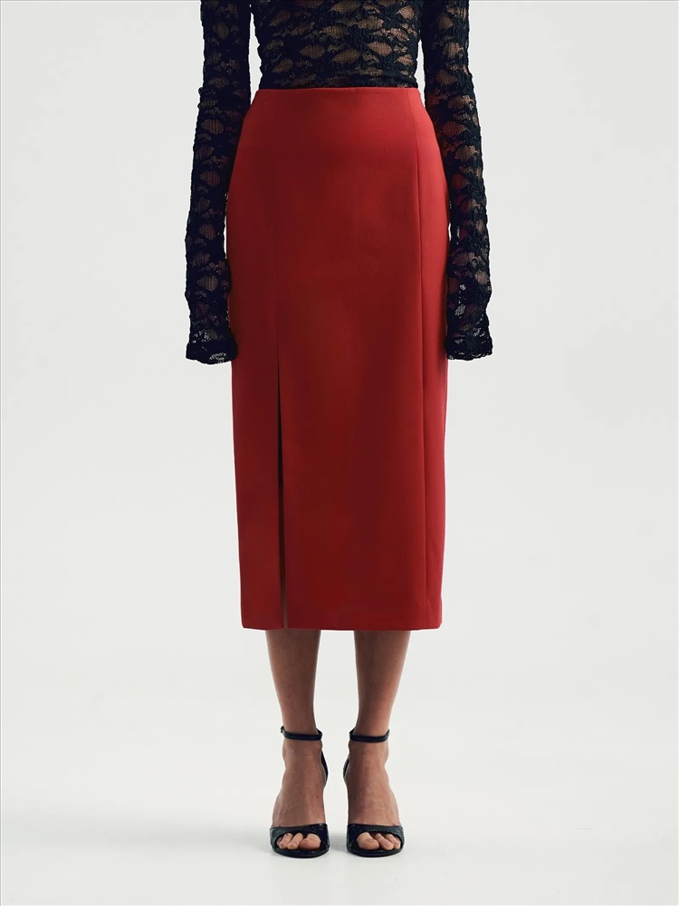 Юбка в притягательном красном цвете хороша для нарядных, деловых и даже повседневных образов. Комфортный вариант на демисезон — в составе почти четверть натуральной шерсти. Застёгивается на молнию сбоку. Элегантная модель-футляр имеет высокую посадку и длину миди. Дополнена модным разрезом с одной стороны. Юбка может стать частью капсулы с жакетом и брюками bedrum