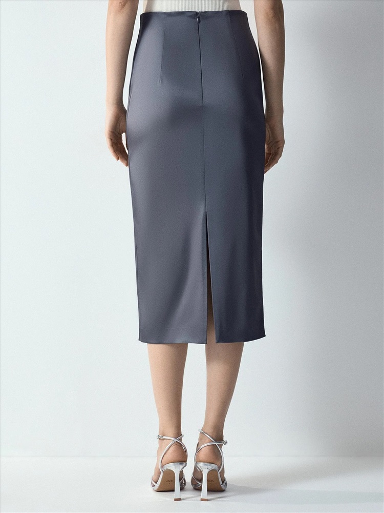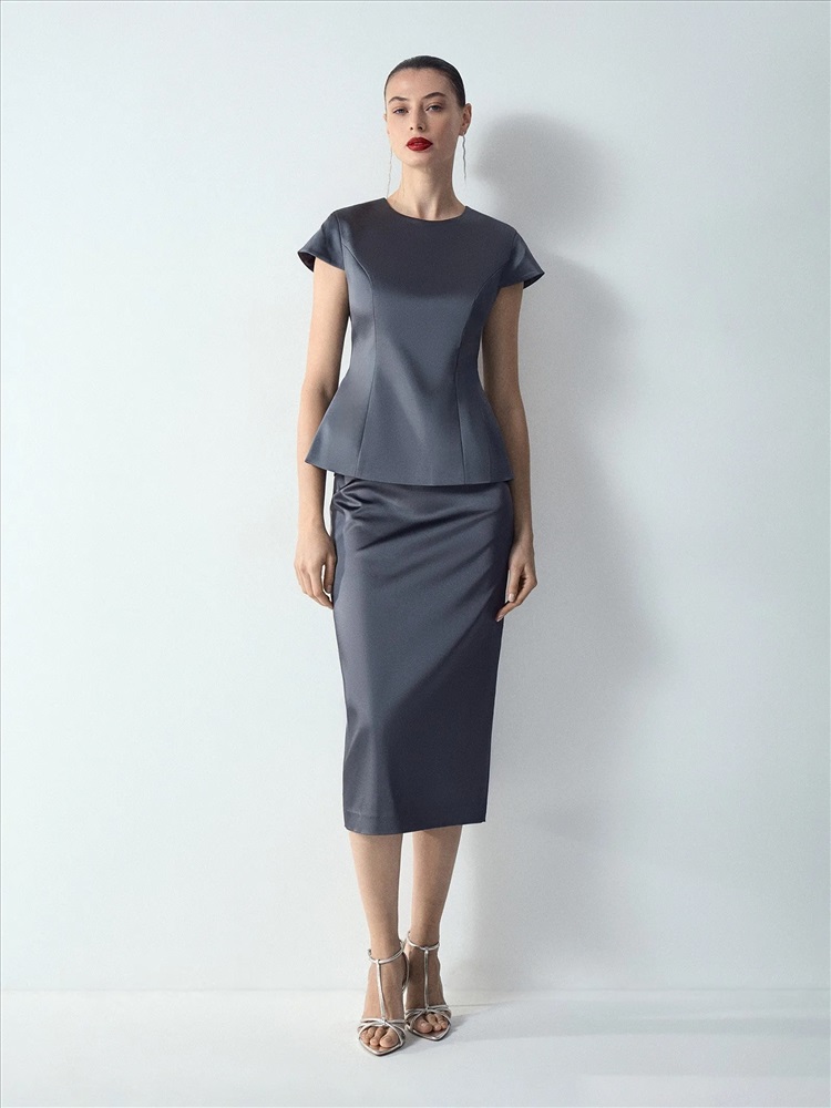 Эта элегантная юбка-карандаш создаст благородный образ к любому случаю. Она выполнена из плотного атласа и отлично садится по фигуре. Благодаря высокой доле ацетата в составе юбка не мнётся и не электризуется. Также материал обладает эластичностью. Модель миди с высокой посадкой визуально вытягивает силуэт. Эффектный графитово-стальной оттенок с глубиной и блеском производит сильное впечатление. Такая вещь одинаково хороша и в офисе, и на корпоративе, и на свидании, подойдёт для выхода в театр или встречи с подругами. Завершить образ можно юбкой из комплекта. Ансамбль станет ядром базового гардероба в стиле современной классики.