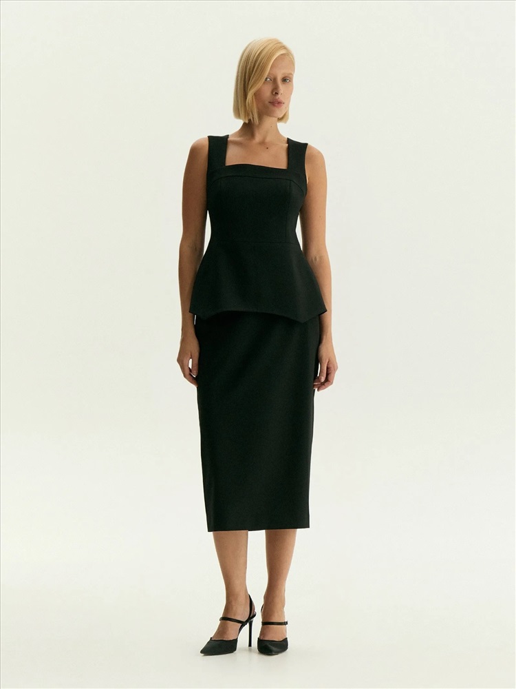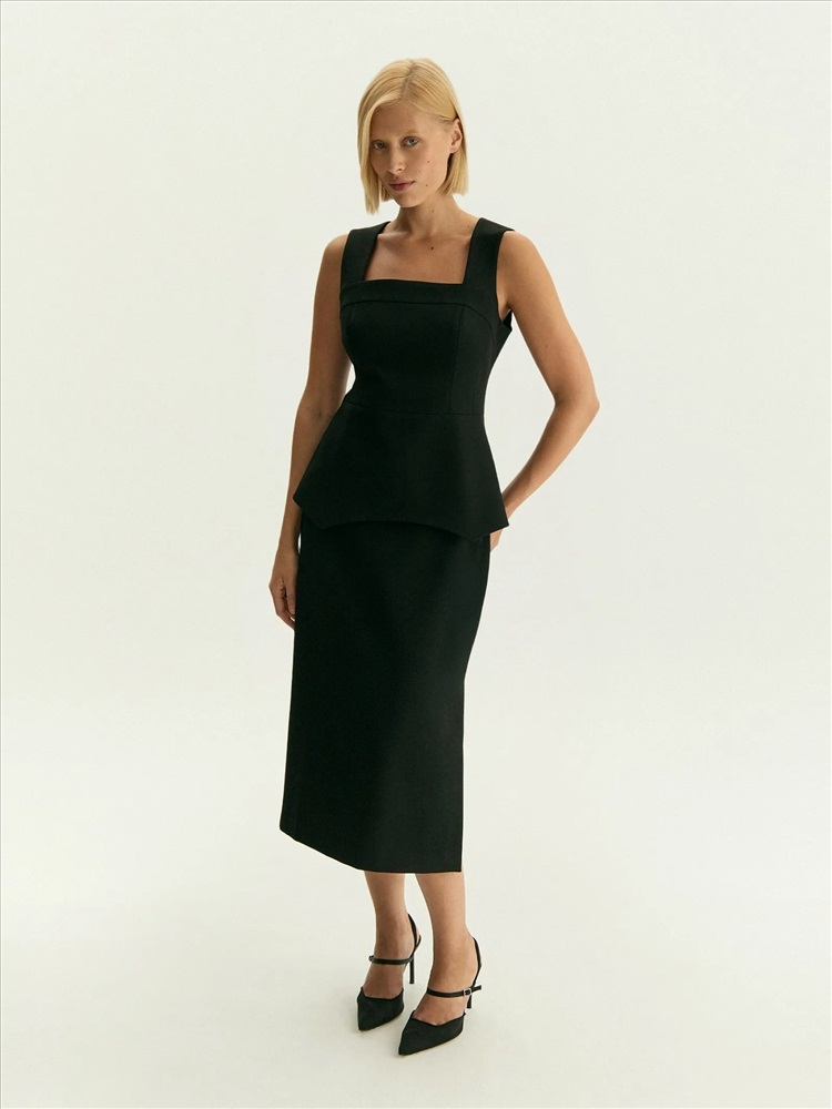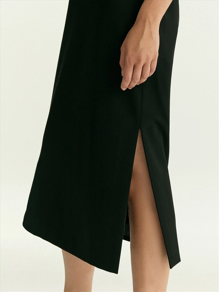 Чёрная юбка-карандаш с разрезом сбоку — незаменимая база в гардеробе. Модель имеет высокую посадку и длину мидакси. Материал — важный плюс юбки. Он смотрится как костюмная ткань, а тянется и комфортно садится по фигуре как трикотаж. При этом хорошо держит форму. Юбка сделана на подкладке с вискозой. Дополнить её можно как эффектными топами из линейки vamp, так и множеством других вариантов верха: от белой рубашки до шёлкового топа с кружевом.