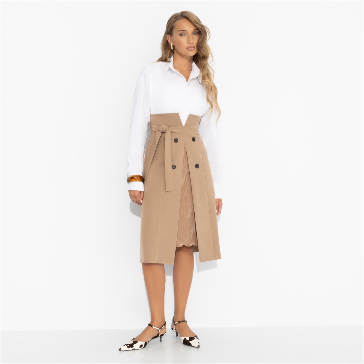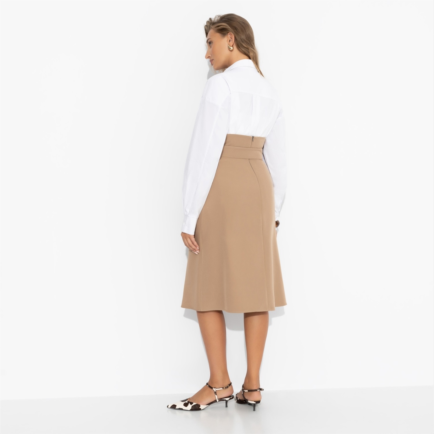 Состав: «Барби», трикотаж «гофре» (60% полиэстер, 37% вискоза, 3% спандекс) Плотность ткани: Средняя Тип ткани: Текстиль Вид застежки: Молния Высота посадки: Высокая Карманы: Нет Основной цвет ткани: Бежевый Отрезная талия: Есть Подклад: Нет Резинка по талии: Нет Рисунок/раппорт: Нет, все изделия идентичны Сезон: Круглогодичный Стиль: Деловой Фасон юбки: Трапеция Фасон юбки: Трапеция Параметры модели на фото: