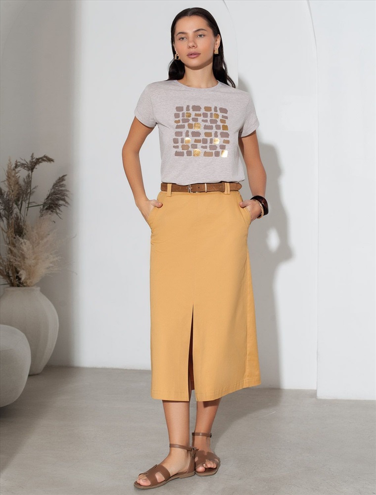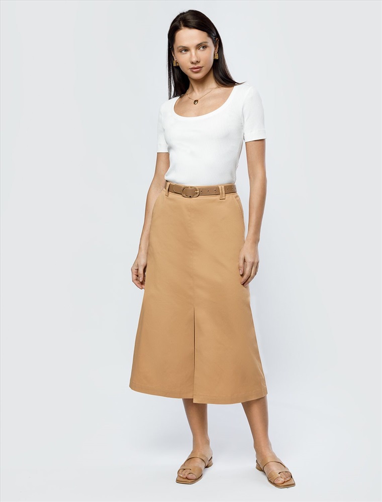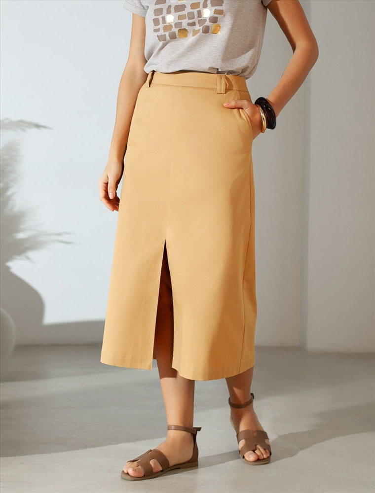 Состав: 97%Хлопок 3%ПУ Женская юбка длины миди А-силуэта выполнена из хлопокового твила. Изделие дополнено разрезом спереди и боковыми карманами. Застежка на молнии сбоку. Отличный вариант для любого сезона, как для офисного стиля, так и для повседневного гардероба. Натуральный материал ткани обеспечивает высокий уровень комфорта, отличную гигроскопичность и воздухопроницаемость. Эластан в составе изделия минимизрует деформацию модели и продлевает срок носки.